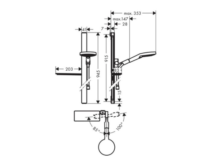 Душевой гарнитур, Hansgrohe, Raindance Select E, размер штанги, мм-900, ширина штанги,мм-41, размер шланга, мм-1600, диаметр ручного душа, мм-125, количество режимов-3, тип струи-RainAir, Rain, WhirlAir, тип душевой штанги-плоский алюминиевый профиль с покрытием из безопасного стекла, цвет-белый/хром, в комплекте-с мыльницей, из безопасного стекла, удобное переключение типов струи с помощью кнопки Select, со стороны душа упорный подшипник, предотвращающий перекручивание душевого шланга, держатель ручного душа регулируется в пределах 90°, поворачивается вправо и влево, перемещается вверх и вниз, полностью хромированный держатель душа, настенные крепления из пластика Душевой гарнитур, Hansgrohe, Raindance Select E, цвет-белый/хром