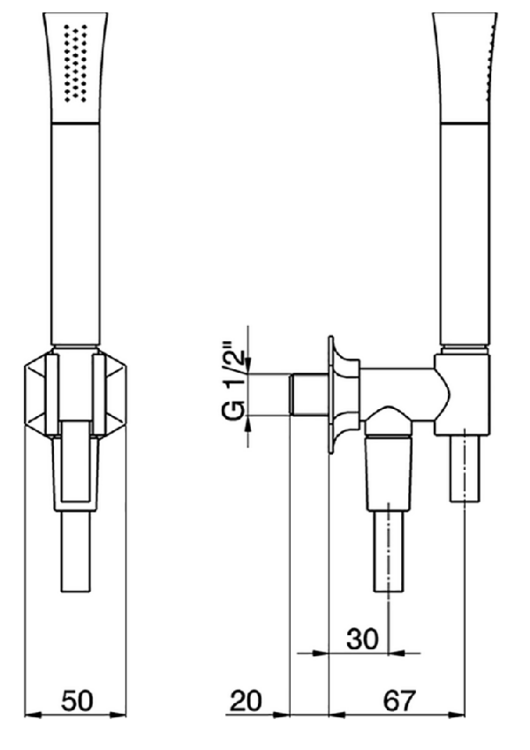 Ручной душ, Cisal, Chérie, тип установки-настенный, ширина, мм-50, глубина, мм-67, форма-цилиндрическая, держатель-есть, гибкий шланг, мм-1500, цвет-хром Ручной душ, Cisal, Chérie, шг 50*67, цвет-хром