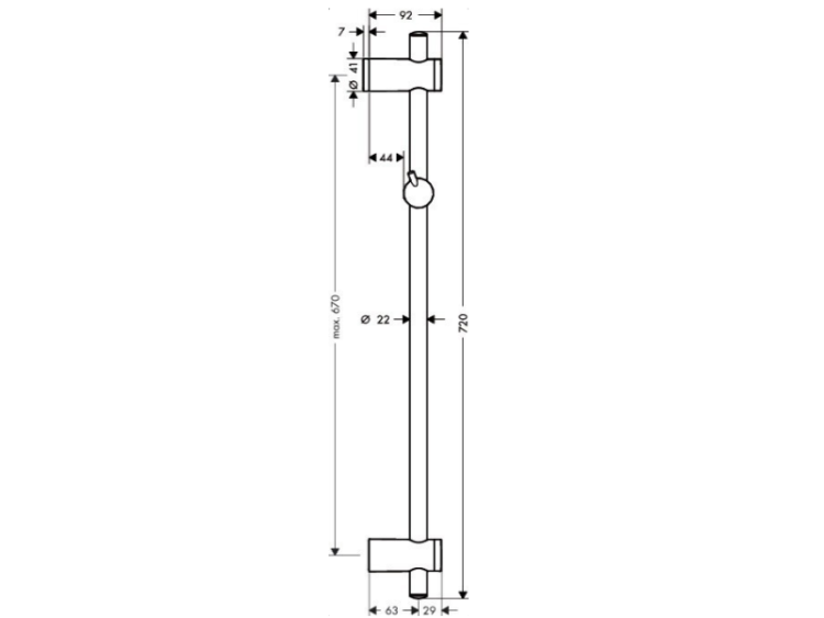 Штанга для душа, Hansgrohe, Unica, длина штанги, мм-720, держатель ручного душа-есть, цвет-хром, бесшумная регулировка угла наклона Штанга для душа, Hansgrohe, Unica, 720, цвет-хром
