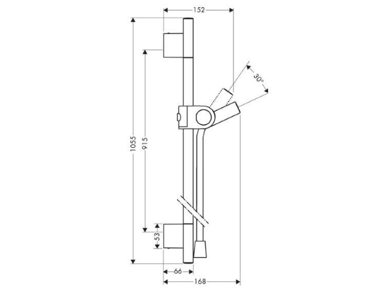 Штанга для душа, Hansgrohe, Axor Uno, длина штанги, мм-900, держатель ручного душа-есть, шланг-есть, длина шланга, мм-1600, тип душевой штанги-труба из ихромированной латуни, ширина штанги,мм-22, полностью хромированный держатель душа из металла, держатель с плавной регулировкой, хромированные настенные крепления из металла, цвет-хром Штанга для душа, Hansgrohe, Axor Uno, длина штанги, мм-900, цвет-хром