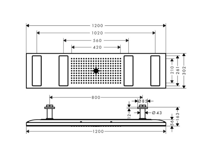 Верхний душ, Axor, Axor ShowerSolutions, тип установки-потолочный, ширина, мм-1200, глубина, мм-300, высота, мм-163, форма-прямоугольная, количество режимов-3, тип струи-Rain, Mono, PowderRain, держатель-есть, размер держателя-100, внутренняя часть-необходимо заказать, цвет-хром, без подстветки Верхний душ, Axor, Axor ShowerSolutions, шгв 1200*300*163, цвет-хром