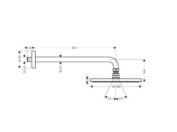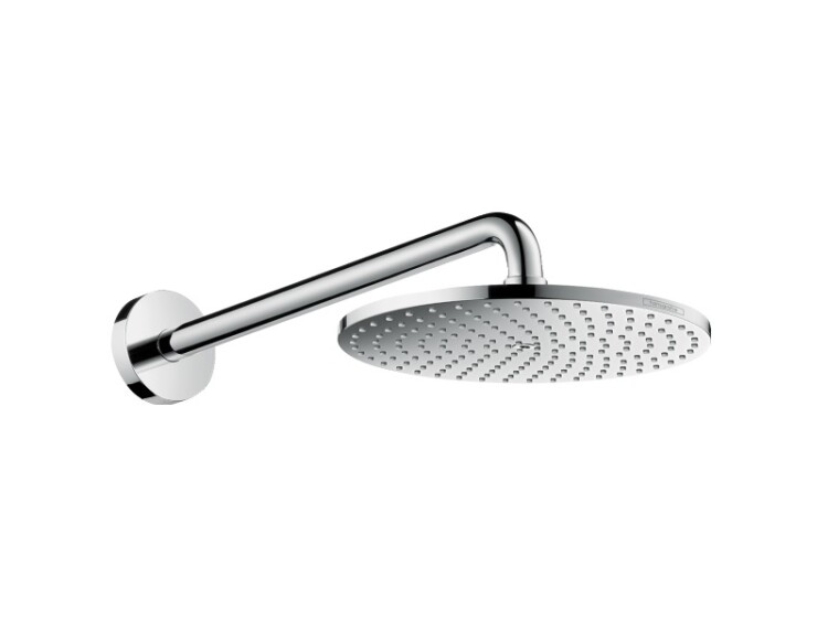 Верхний душ, Hansgrohe, Raindance S, тип установки-настенный, размер душевого диска, мм-240*240, форма-круглая, количество режимов-1, тип струи-PowderRain, держатель-есть, размер держателя-390, цвет-хром, материал душевого диска-металл Верхний душ, Hansgrohe, Raindance S, 240*240, цвет-хром