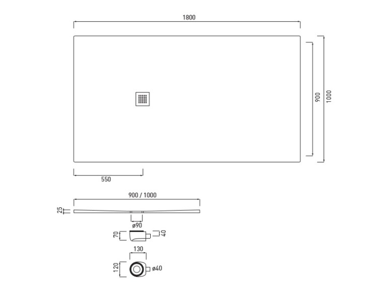 Душевой поддон, CIELO, Venticinque, накладная/на уровне пола, ширина, мм-900, глубина, мм-1800, высота, мм-25, форма-прямоугольная, сифон-есть, диаметр слива, мм-90, материал-Marmogres, цвет-Bianco matt, решетка-в комплекте, реверсивный, все стороны покрыты эмалью Душевой поддон, CIELO, Venticinque, шгв 900*1800*25, цвет-Bianco matt
