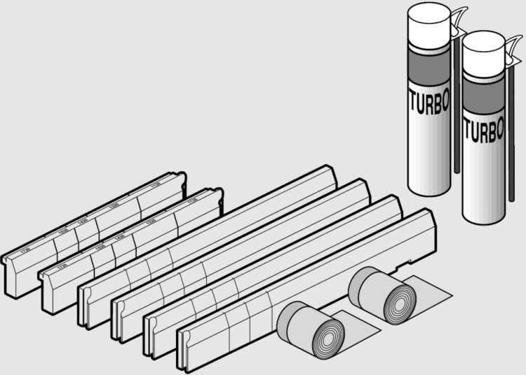 Монтажный комплект, Villeroy&Boch, для больших размеров (1200 x 800 - 1800 x 1000), комплектация: регулируемая по высоте подставка полистирола, монтажная пена и клей, уплотнительная лента Монтажный комплект, Villeroy&Boch