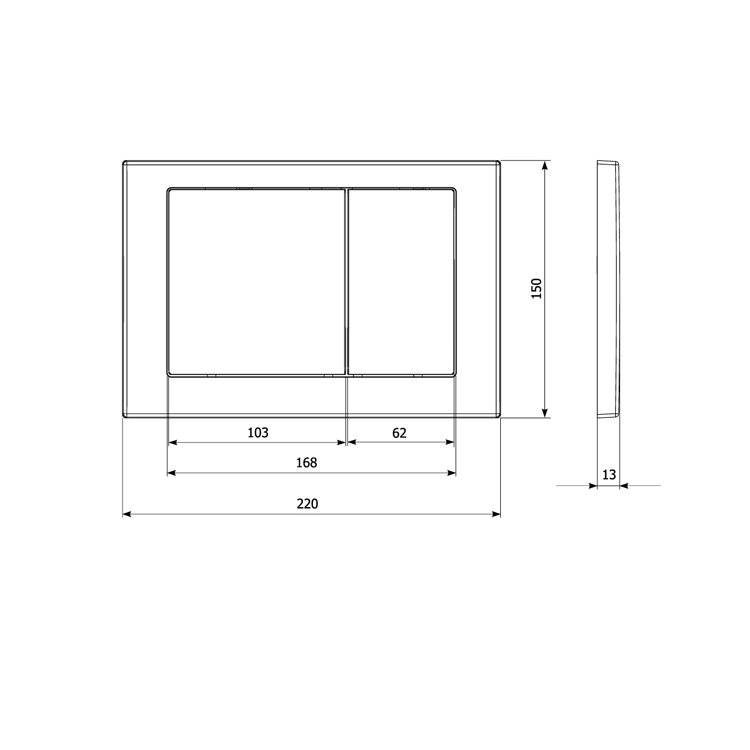 Клавиша смыва, Elsen, E05, для унитаза, ширина, мм-220, глубина, мм-13, высота, мм-150, тип смыва-двойной, тип управления-механический, материал-пластик, цвет-черный матовый Клавиша смыва, Elsen, E05, для унитаза, шгв 220*13*150, цвет-черный матовый