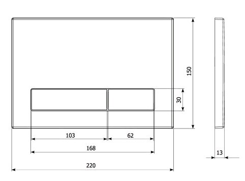 Клавиша смыва, Elsen, E16, для унитаза, ширина, мм-220, глубина, мм-13, высота, мм-150, тип смыва-двойной, тип управления-механический, материал-пластик, без выступа кнопки, цвет-белый Клавиша смыва, Elsen, E16, для унитаза, шгв 220*13*150, без выступа кнопки, цвет-белый