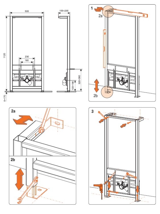 Инсталляция, Elsen, для биде, ширина, мм-500, глубина, мм-155, высота, мм-1120, материал-металл, тип установки-к стене, крепления в комплекте Инсталляция, Elsen, для биде, шгв 500*155*1120