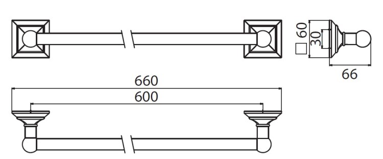 Полотенцедержатель, Emco, Classic, одинарный, ширина, мм-600, глубина, мм-66, высота, мм-60, тип установки-настенный, материал-металл, крепления в комплекте, цвет-золото Полотенцедержатель, Emco, Classic, шгв 600*66*60, цвет-золото