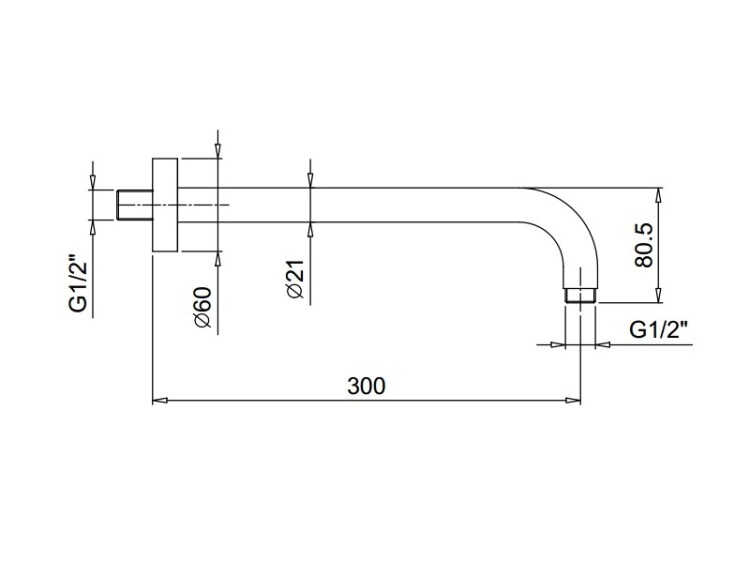 Держатель верхнего душа, Fantini, AF/21 Fukasawa, вид-настенный, вынос, мм-300, круглая розетка, впуск 1/2'', цвет-Matt British Gold PVD Держатель верхнего душа, Fantini, AF/21 Fukasawa, цвет-Matt British Gold PVD