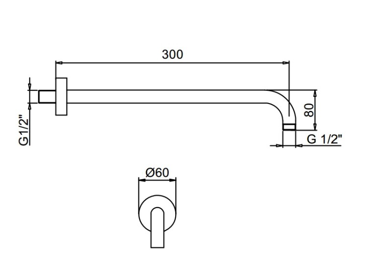 Держатель верхнего душа, Fantini, вид-настенный, вынос, мм-300, цвет-белый матовый, круглая розетка, впуск 1/2'' Держатель верхнего душа, Fantini, цвет-белый матовый