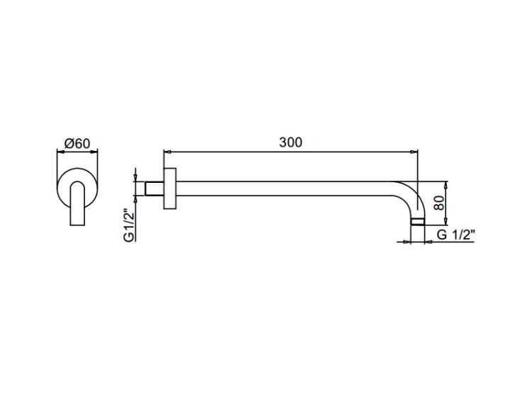 Держатель верхнего душа, Fantini, вид-настенный, вынос, мм-300, цвет-черный матовый, круглая розетка, впуск 1/2'' Держатель верхнего душа, Fantini, цвет-черный матовый