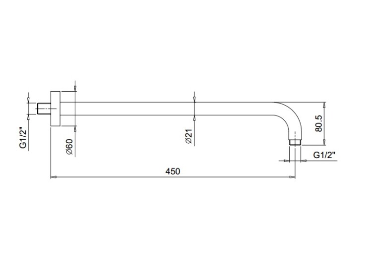 Держатель верхнего душа, Fantini, вид-настенный, вынос, мм-450, цвет-хром, круглая розетка, впуск 1/2'' Держатель верхнего душа, Fantini, цвет-хром