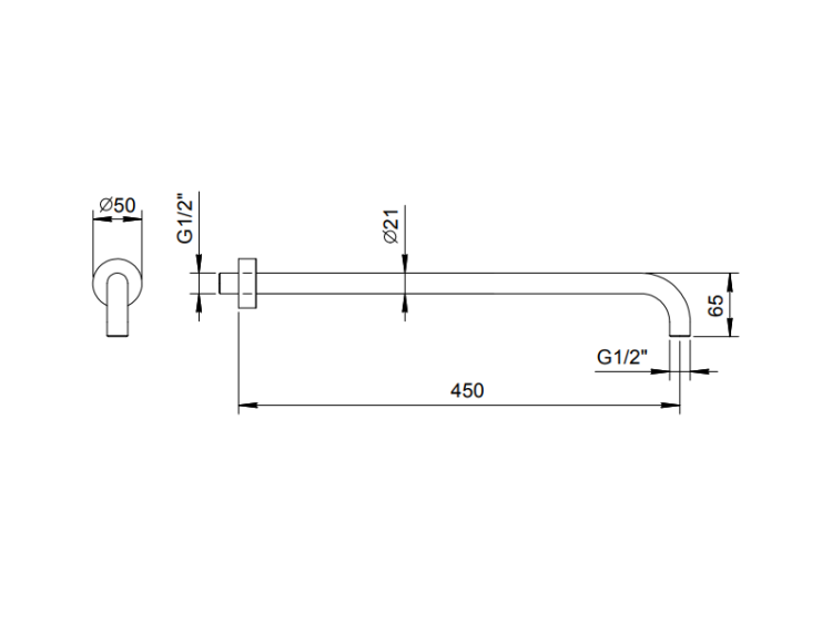 Держатель верхнего душа, Fantini, вид-настенный, вынос, мм-450, цвет-матовая натуральная сталь Держатель верхнего душа, Fantini, цвет-матовая натуральная сталь