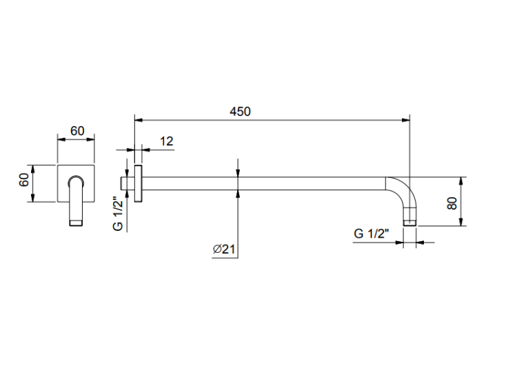 Держатель верхнего душа, Fantini, вид-настенный, вынос, мм-450, цвет-матовая натуральная сталь Держатель верхнего душа, Fantini, цвет-матовая натуральная сталь