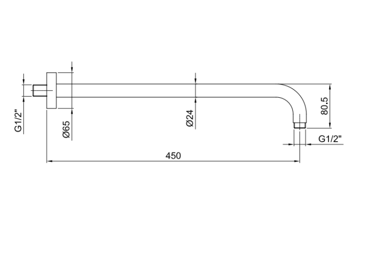 Держатель верхнего душа, Fantini, Fukasawa, вид-настенный, вынос, мм-450, цвет-Matt Gun Metal PVD Держатель верхнего душа, Fantini, Fukasawa, цвет-Matt Gun Metal PVD