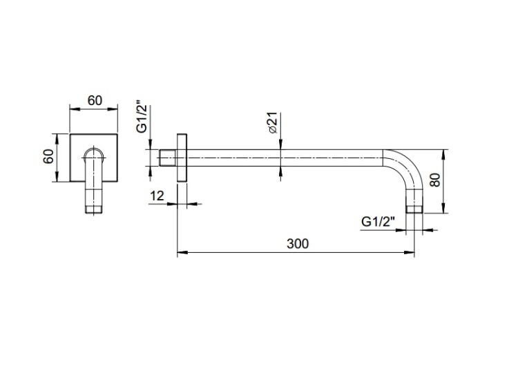 Держатель верхнего душа, Fantini, Nostromo, вид-настенный, вынос, мм-300, цвет-белый матовый, квадратная розетка, впуск 1/2'' Держатель верхнего душа, Fantini, Nostromo, цвет-белый матовый