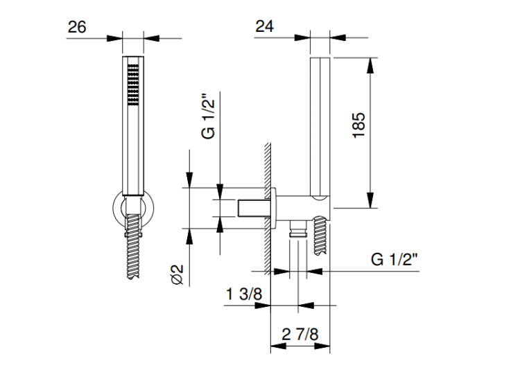 Душевой набор, Fantini, Venezia, форма лейки-цилиндрическая, держатель для душа-есть, шланг-есть, длина шланга, мм-1400, шланговое подключение-есть, цвет-Matt British Gold PVD Душевой набор, Fantini, Venezia, цвет-Matt British Gold PVD