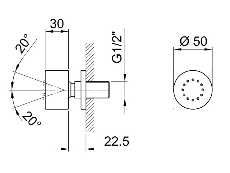 Форсунка, Fantini, угол поворота-20, форма-круглая, цвет-хром, боковая, регулируемая, материал-латунь, система от известкового налета, впуск 1/2'' Форсунка, Fantini, цвет-хром
