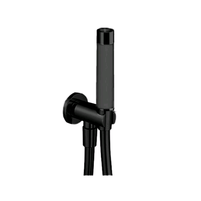 Гигиенический душ, Fantini, с черной ручкой Delrin, шланг-есть, длина шланга, мм-1500, ПВХ, шланговое подсоединение с держателем для ручной лейки, держатель-в комплекте, круглая розетка, впуск 1/2'', материал-металл, цвет-черный матовый Гигиенический душ, Fantini, цвет-черный матовый
