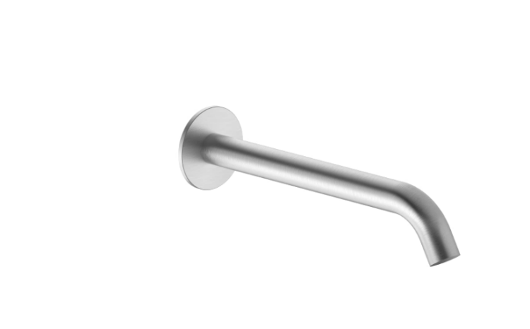 Излив, Fantini, Nostromo, настенный, вынос излива, мм-200, стандарт подводки-1/2", цвет-сталь матовая натуральная Излив, Fantini, Nostromo, цвет-сталь матовая натуральная