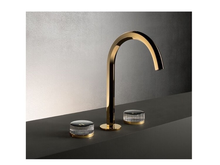 Ручка для смесителя, Fantini, Venezia, для артикулов: N404S - N504S - N405SW - N458SB - N413SB -N513SB - N509S - N411SB - N465S - N565S - N467S - N567S, стеклянная левая "H" (горячая вода), цвет-золото плюс-черный Ручка для смесителя, Fantini, Venezia, левая, горячая, золото плюс-черный