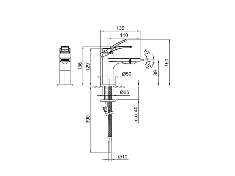 Смеситель для биде, Fantini, AL/23 LISSONI, тип открывания воды-однорычажный, отверстия для монтажа-1, высота, мм-160, вынос излива, мм-135, тип подводки-гибкая, цвет-черный матовый Смеситель для биде, Fantini, AL/23 LISSONI, цвет-черный матовый