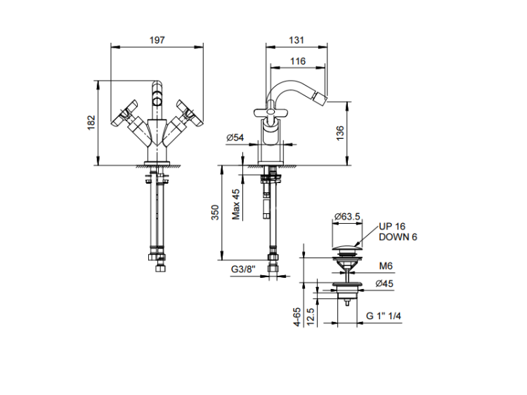 Смеситель для биде, Fantini, Icona Classic, тип открывания воды-двухвентильный, тип регулирования воды-керамический картридж, отверстия для монтажа-1, высота, мм-194, вынос излива, мм-108, донный клапан-есть, нажимного типа, цвет-хром Смеситель для биде, Fantini, Icona Classic, цвет-хром