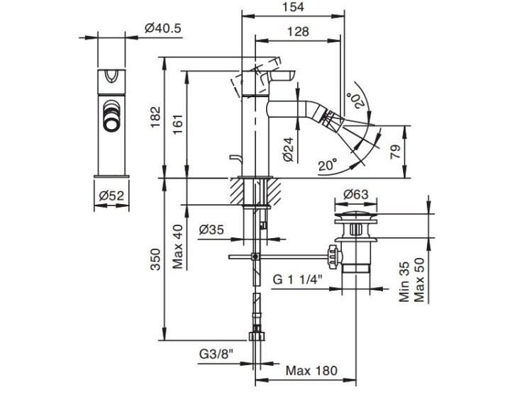 Смеситель для биде, Fantini, Icona Classic, тип открывания воды-однорычажный, тип регулирования воды-традиционный картридж, отверстия для монтажа-1, высота, мм-161, вынос излива, мм-125, донный клапан-есть, стандарт подвода воды-3/8", цвет-хром, в комплекте-ручка, видимый аэратор, подводка Смеситель для биде, Fantini, Icona Classic, цвет-хром
