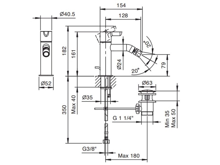 Смеситель для биде, Fantini, Icona Classic, тип открывания воды-однорычажный, отверстия для монтажа-1, высота, мм-161, вынос излива, мм-125, донный клапан-есть, стандарт подвода воды-3/8", цвет-Matt British Gold PVD, в комплекте-ручка, видимый аэратор, подводка Смеситель для биде, Fantini, Icona Classic, цвет-Matt British Gold PVD