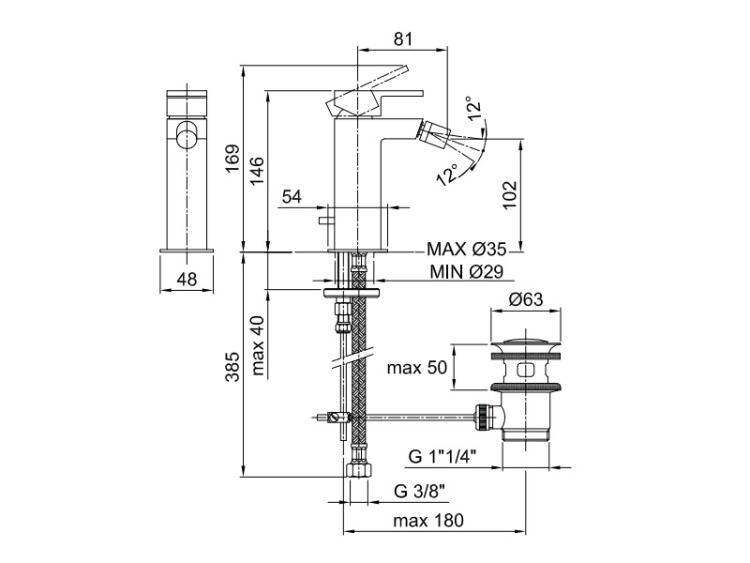 Смеситель для биде, Fantini, Mare, тип открывания воды-однорычажный, тип регулирования воды-традиционный картридж, отверстия для монтажа-1, высота, мм-146, вынос излива, мм-85, донный клапан-есть, стандарт подвода воды-3/8", цвет-хром, видимый аэратор Смеситель для биде, Fantini, Mare, цвет-хром