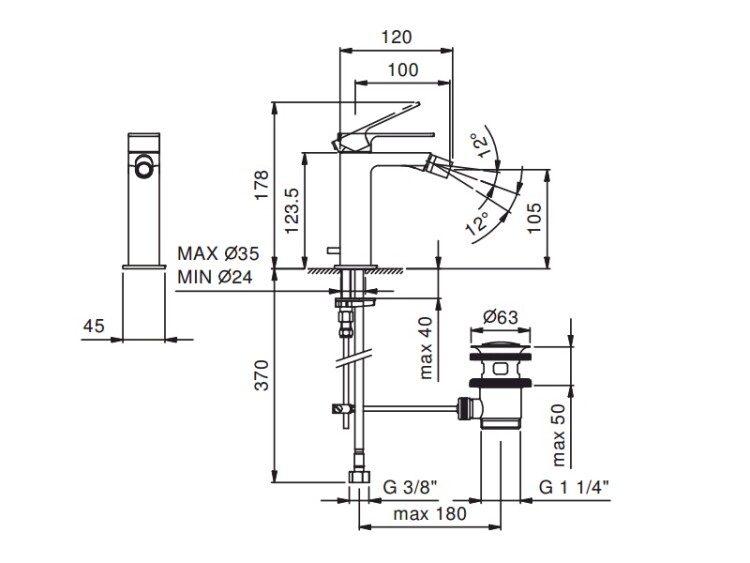 Смеситель для биде, Fantini, Mint, тип открывания воды-рычажный, тип регулирования воды-керамический картридж, отверстия для монтажа-1, высота, мм-123.5, вынос излива, мм-100, донный клапан-есть, стандарт подвода воды-3/8", цвет-хром, видимый аэратор Смеситель для биде, Fantini, Mint, цвет-хром