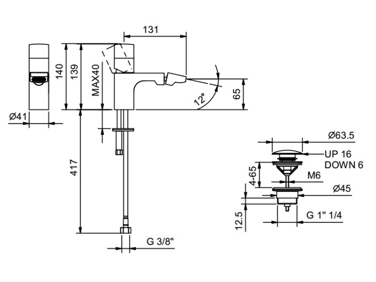 Смеситель для биде, Fantini, NICE, тип регулирования воды-традиционный картридж, отверстия для монтажа-1, высота, мм-140, вынос излива, мм-130, донный клапан-есть, нажимного типа, стандарт подвода воды-3/8", видимый аэратор, подводка, ручки-необходимо заказать, цвет-хром Смеситель для биде, Fantini, NICE, цвет-хром