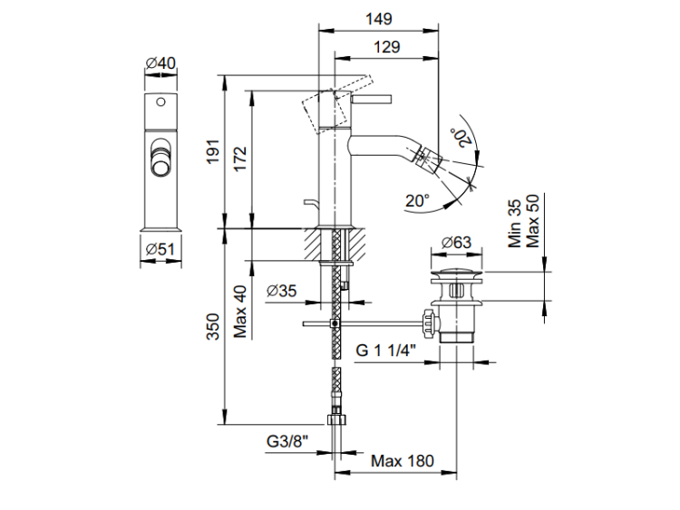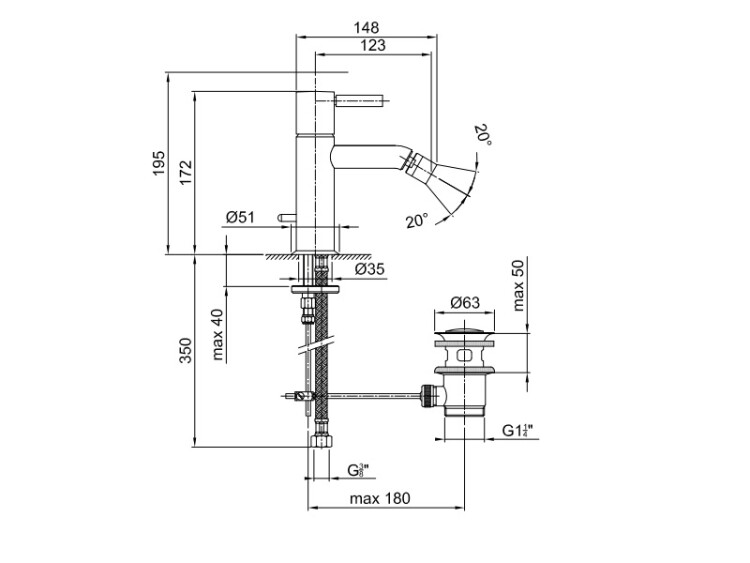 Смеситель для биде, Fantini, Nostromo, тип открывания воды-однорычажный, тип регулирования воды-традиционный картридж, отверстия для монтажа-1, высота, мм-172, вынос излива, мм-125, донный клапан-есть, стандарт подвода воды-3/8", цвет-черный матовый, видимый аэратор Смеситель для биде, Fantini, Nostromo, цвет-черный матовый