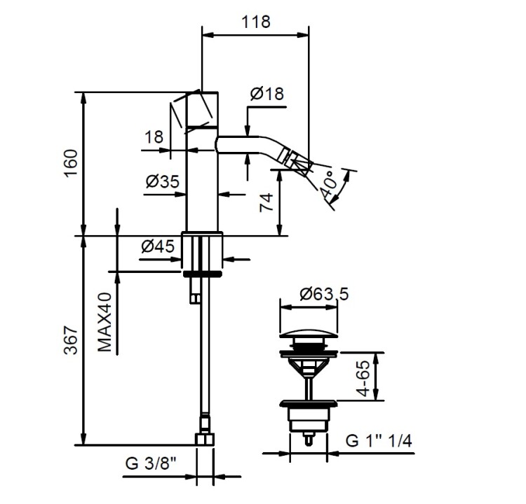 Смеситель для биде, Fantini, Nostromo, тип открывания воды-однорычажный, тип регулирования воды-керамический картридж, отверстия для монтажа-1, высота, мм-160, вынос излива, мм-118, донный клапан-есть, тип подводки-гибкая, стандарт подвода воды-3/8", цвет-черный матовый Смеситель для биде, Fantini, Nostromo, цвет-черный матовый