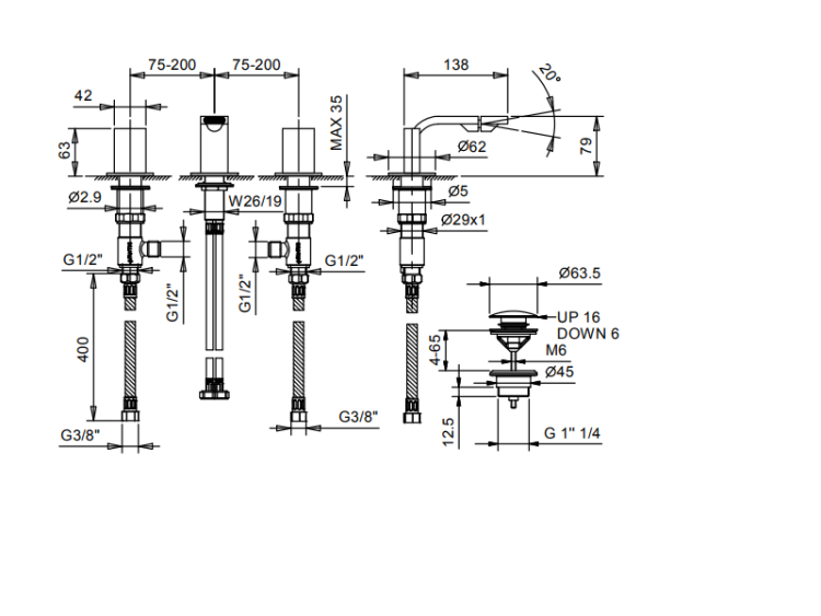 Смеситель для биде, Fantini, Venezia, тип открывания воды-двухвентильный, тип регулирования воды-керамический картридж, отверстия для монтажа-3, высота, мм-79, вынос излива, мм-138, донный клапан-есть, цвет-хром Смеситель для биде, Fantini, Venezia, цвет-хром