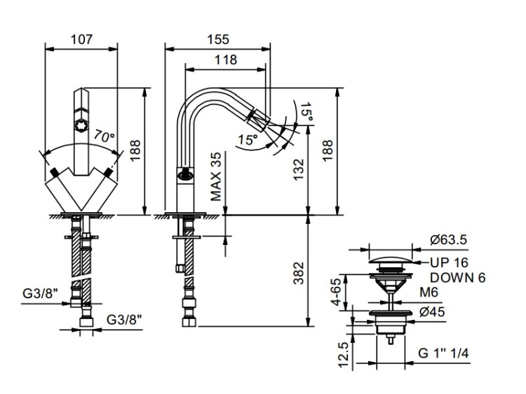 Смеситель для биде, Fantini, Venezia, тип открывания воды-двухвентильный, тип регулирования воды-керамический картридж, отверстия для монтажа-1, высота, мм-188, вынос излива, мм-120, донный клапан-есть, нажимного типа, стандарт подвода воды-3/8", цвет-золото плюс, ручки заказываются отдельно, видимый аэратор Смеситель для биде, Fantini, Venezia, цвет-золото плюс