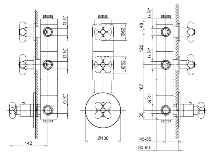 Смеситель для душа, Fantini, I Balocchi, тип открывания воды-трехвентильный, тип регулирования воды-термостатический картридж, тип установки-встраиваемый, отверстия для монтажа-3, внутренняя часть-необходимо заказать, цвет-белый матовый, в комплекте-2 выпуска 3/4'', ручки, впуски 3/4'', звукоизолированные Смеситель для душа, Fantini, I Balocchi, цвет-белый матовый