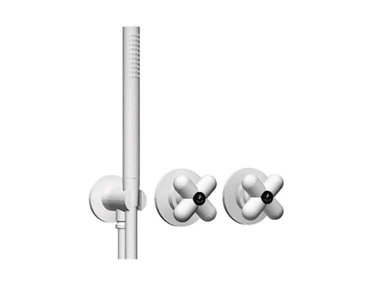 Смеситель для душа, Fantini, I Balocchi, тип открывания воды-двухвентильный, тип регулирования воды-прогрессивный картридж, тип установки-встраиваемый, отверстия для монтажа-3, внутренняя часть-необходимо заказать, цвет-белый матовый, в комплекте-ручки, переключатель с закрытием, на 2 потока с поворотной кнопкой, ручная лейка FIT, шланговое подсоединение с держателем для ручной лейки, гибкий шланг,мм-1500, ПВХ, впуски 1/2'', звукоизолированные Смеситель для душа, Fantini, I Balocchi, цвет-белый матовый