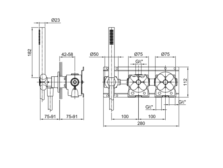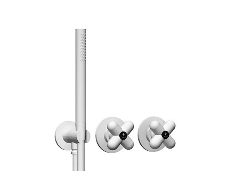 Смеситель для душа, Fantini, I Balocchi, тип открывания воды-двухвентильный, тип установки-встраиваемый, отверстия для монтажа-3, комплектация-ручной душ, держатель ручного душа, шланг, переключатель с закрытием, на 2 потока с поворотной кнопкой, система звукоизоляции, внутренняя часть-необходимо заказать, цвет-черный матовый Смеситель для душа, Fantini, I Balocchi, цвет-черный матовый