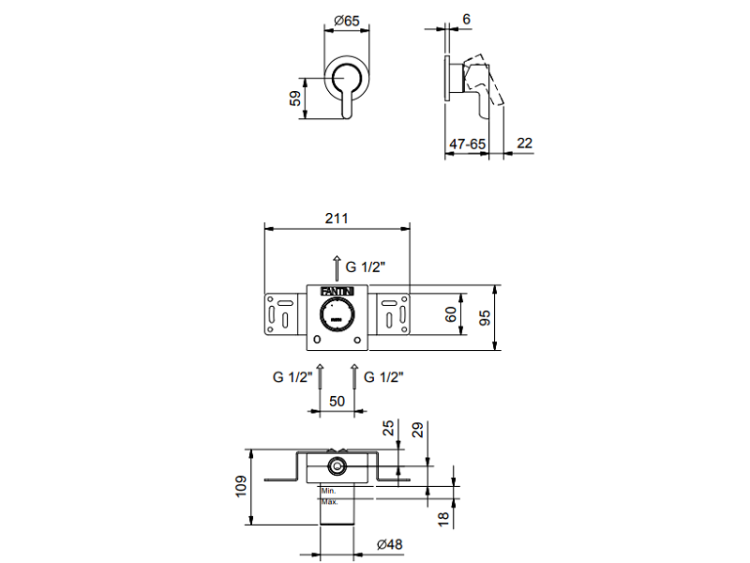 Смеситель для душа, Fantini, Icona Classic, Icona Deco, тип открывания воды-однорычажный, тип установки-встраиваемый, отверстия для монтажа-1, комплектация-система звукоизоляции, внутренняя часть-необходимо заказать, цвет-хром Смеситель для душа, Fantini, Icona Classic, цвет-хром