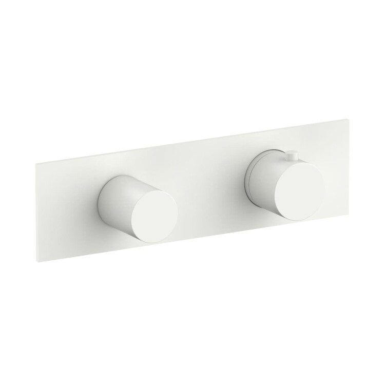 Смеситель для душа, Fantini, Nostromo, только для горизонтальной установки, тип открывания воды-вентильный, тип регулирования воды-термостатический картридж, монтаж-настенный встраиваемый, отверстия для монтажа-2, внутренняя часть-необходимо заказать, в комплекте-ручки, переключатель с закрытием, на 2 потока с поворотной кнопкой, впуски 3/4'', цвет-белый матовый Смеситель для душа, Fantini, Nostromo, цвет-белый матовый