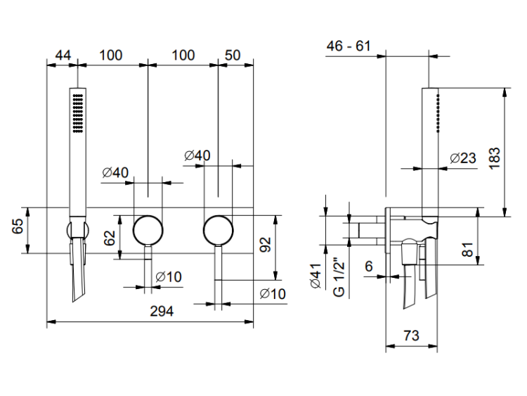 Смеситель для душа, Fantini, Nostromo, тип установки-встраиваемый, внутренняя часть-необходимо заказать, цвет-хром, ручной душ, шланговое подсоединение с держателем для ручного душа, шланг 1500 мм, впуски 1/2'' Смеситель для душа, Fantini, Nostromo, цвет-хром