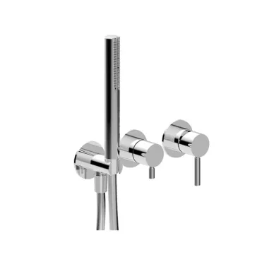 Смеситель для душа, Fantini, Nostromo, на 2 потребителя, с поворотной кнопкой, тип открывания воды-вентильный, тип регулирования воды-керамический картридж, монтаж-настенный встраиваемый, отверстия для монтажа-3, ручная лейка SUN, шланговое подсоединение с держателем для ручной лейки, шланг-1500 мм, впуски 1/2'', ручки-есть, внутренняя часть-необходимо заказать, цвет-сталь матовая Смеситель для душа, Fantini, Nostromo, на 2 потребителя, цвет-сталь матовая