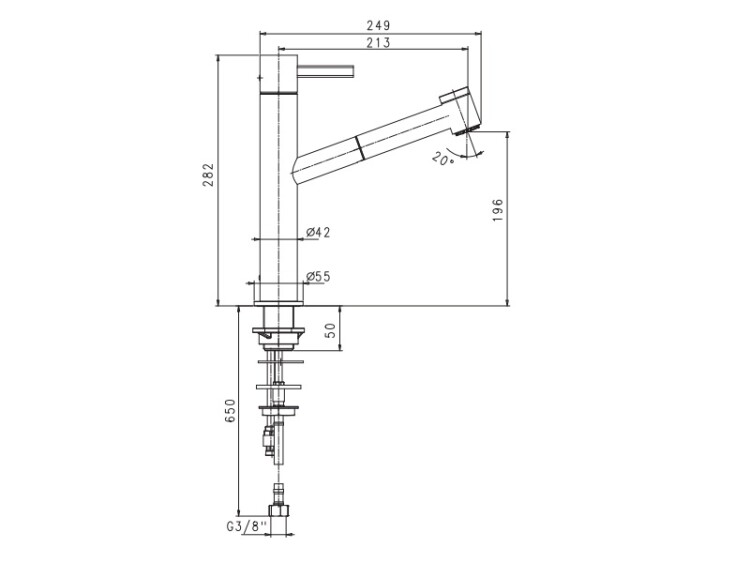 Смеситель для раковины, Fantini, AF/21, тип открывания воды-однорычажный, тип регулирования воды-традиционный картридж, отверстия для монтажа-1, высота, мм-282, вынос излива, мм-213, тип излива-поворотный, стандарт подвода воды-3/8", цвет-Matt Gun Metal PVD, комплектация-ручка, выдвижной душ Смеситель для раковины, Fantini, AF/21, цвет-Matt Gun Metal PVD