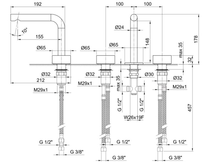 Смеситель для раковины, Fantini, AF/21 Fukasawa, тип открывания воды-двухвентильный, тип регулирования воды-керамический картридж, отверстия для монтажа-3, высота, мм-178, вынос излива, мм-155, цвет-хром, в комплекте-ручки, подводка Смеситель для раковины, Fantini, AF/21 Fukasawa, цвет-хром