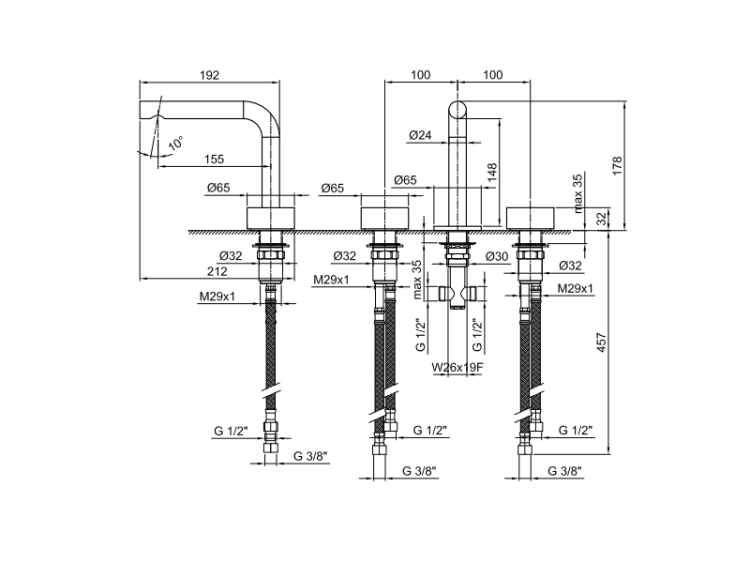 Смеситель для раковины, Fantini, AF/21 Fukasawa, тип открывания воды-вентильный, тип регулирования воды-керамический картридж, монтаж-на раковину/столешницу, отверстия для монтажа-3, высота, мм-178, вынос излива, мм-155, тип излива-неподвижный, донный клапан-отсутствует, тип подводки-гибкая, стандарт подвода воды-3/8", цвет-Matt British Gold PVD Смеситель для раковины, Fantini, AF/21 Fukasawa, цвет-Matt British Gold PVD