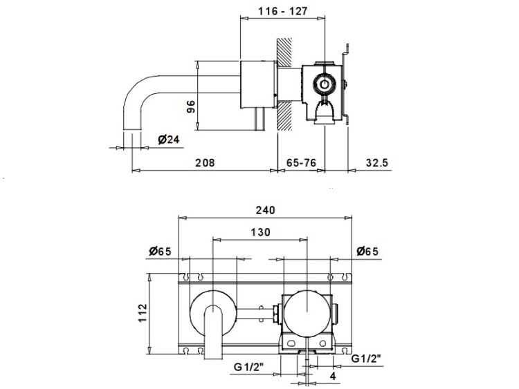 Смеситель для раковины, Fantini, AF/21 Fukasawa, тип регулирования воды-традиционный картридж, тип установки-настенный, отверстия для монтажа-1, вынос излива, мм-208, внутренняя часть-необходимо заказать, цвет-Matt Gun Metal PVD, впуски 1/2'', в комплекте-ручка Смеситель для раковины, Fantini, AF/21 Fukasawa, цвет-Matt Gun Metal PVD