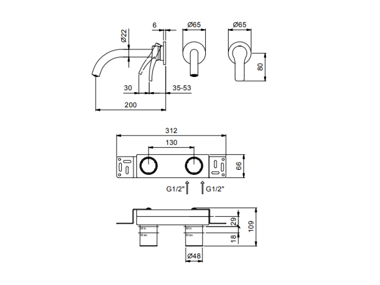 Смеситель для раковины, Fantini, AL/23 LISSONI, тип открывания воды-однорычажный, тип регулирования воды-традиционный картридж, тип установки-настенный, отверстия для монтажа-2, вынос излива, мм-200, внутренняя часть-необходимо заказать, цвет-черный матовый Смеситель для раковины, Fantini, AL/23 LISSONI, цвет-черный матовый