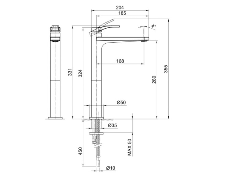 Смеситель для раковины, Fantini, AL/23 Lissoni, тип открывания воды-однорычажный, тип регулирования воды-традиционный картридж, отверстия для монтажа-1, высота, мм-324, вынос излива, мм-170, тип излива-высокий, цвет-хром, в комплекте-ручка, подводка Смеситель для раковины, Fantini, AL/23 Lissoni, цвет-хром