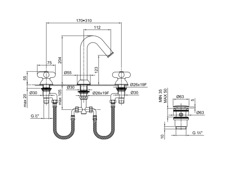 Смеситель для раковины, Fantini, I Balocchi, тип открывания воды-двухвентильный, отверстия для монтажа-3, высота, мм-204, вынос излива, мм-112, донный клапан-есть, цвет-белый матовый Смеситель для раковины, Fantini, I Balocchi, цвет-белый матовый
